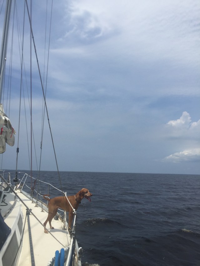 We ended up making it the 90 or so miles to Elizabeth City where we tied up to the sea wall by the park which is a bit of a weird experience. The dog immediately jumped off to go roll around in some grass. This was our first night without an actual storm hitting us, even though it seemed one was following us up the river to Elizabeth City the whole time.
