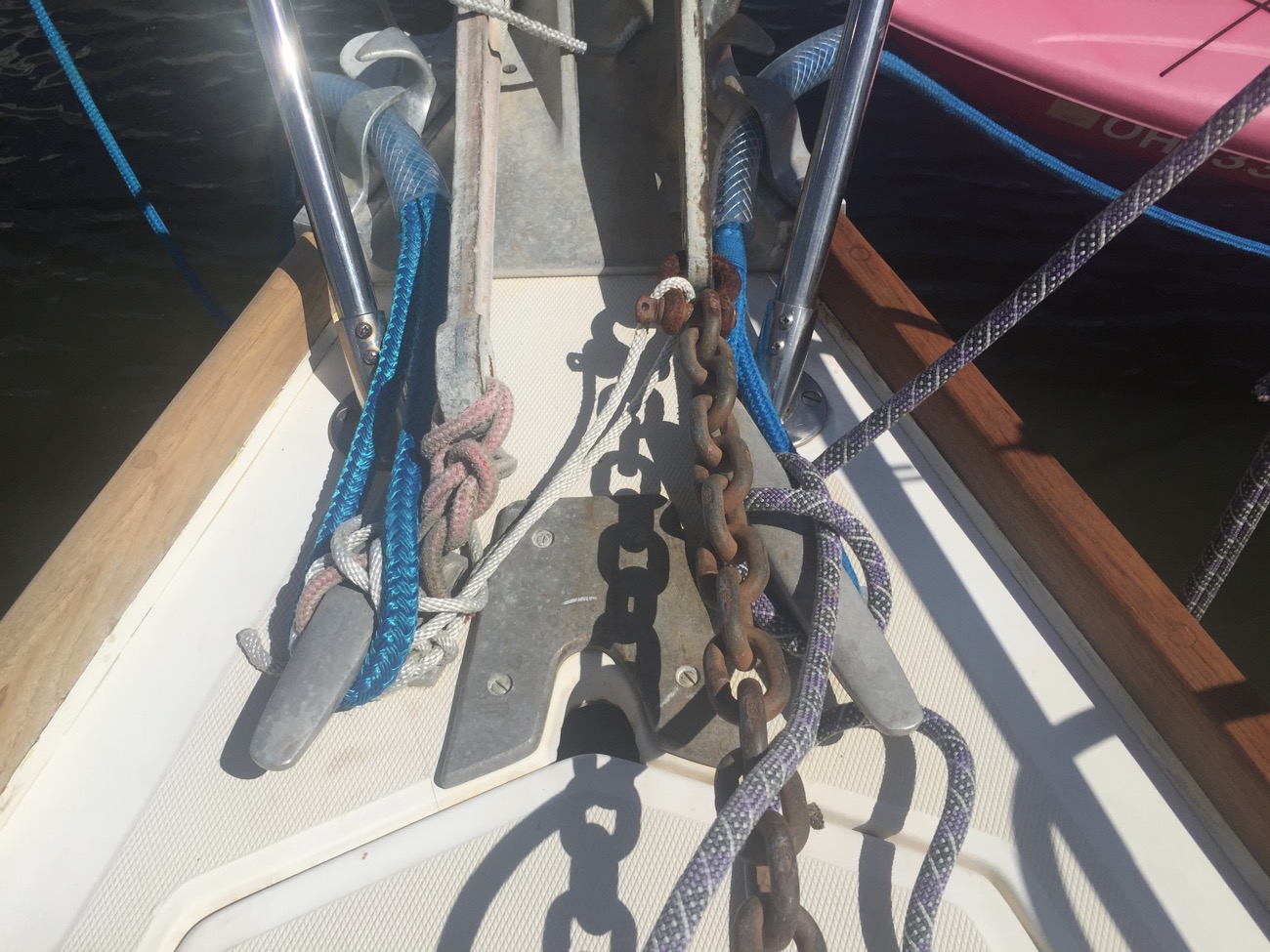 Pulling up the sail let all the left over bits and pieces of birds nest drop out, which was after I had cleaned out what I could at the dock.
